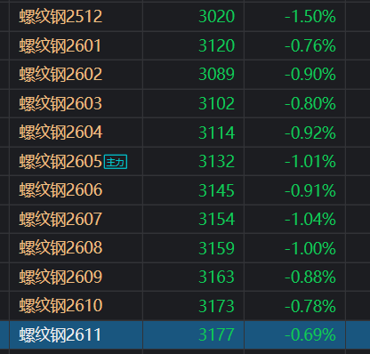 2611合约较2601合约,螺纹钢升水的比例为1.83%。