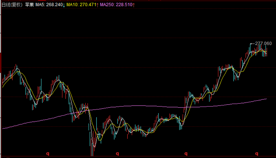 苹果(Apple): 依靠软硬件整合优势,走势依然稳健 。